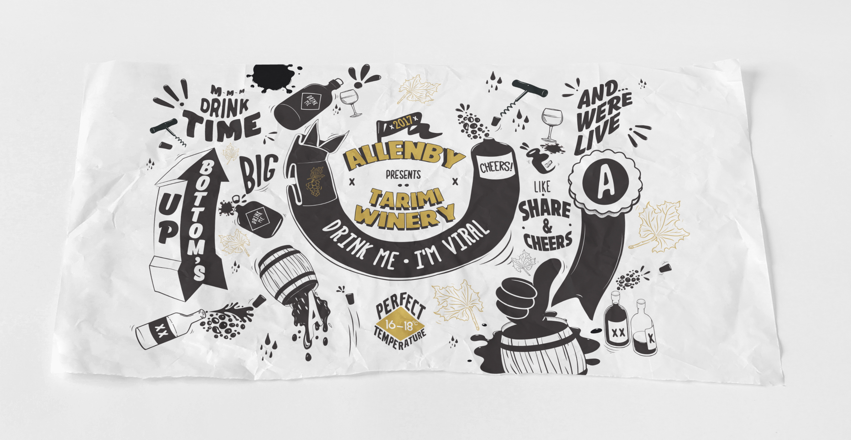 Illustrated elements for wine label and wrapping paper design, made for the office clients.